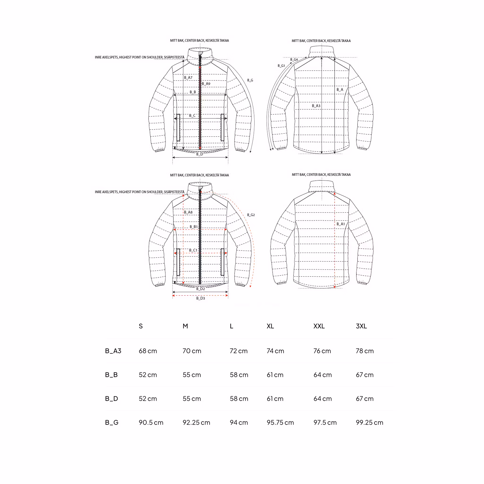 Detaljer: Hög krage, elastiska kantband i ärmslut och huva, justerbar nederkant