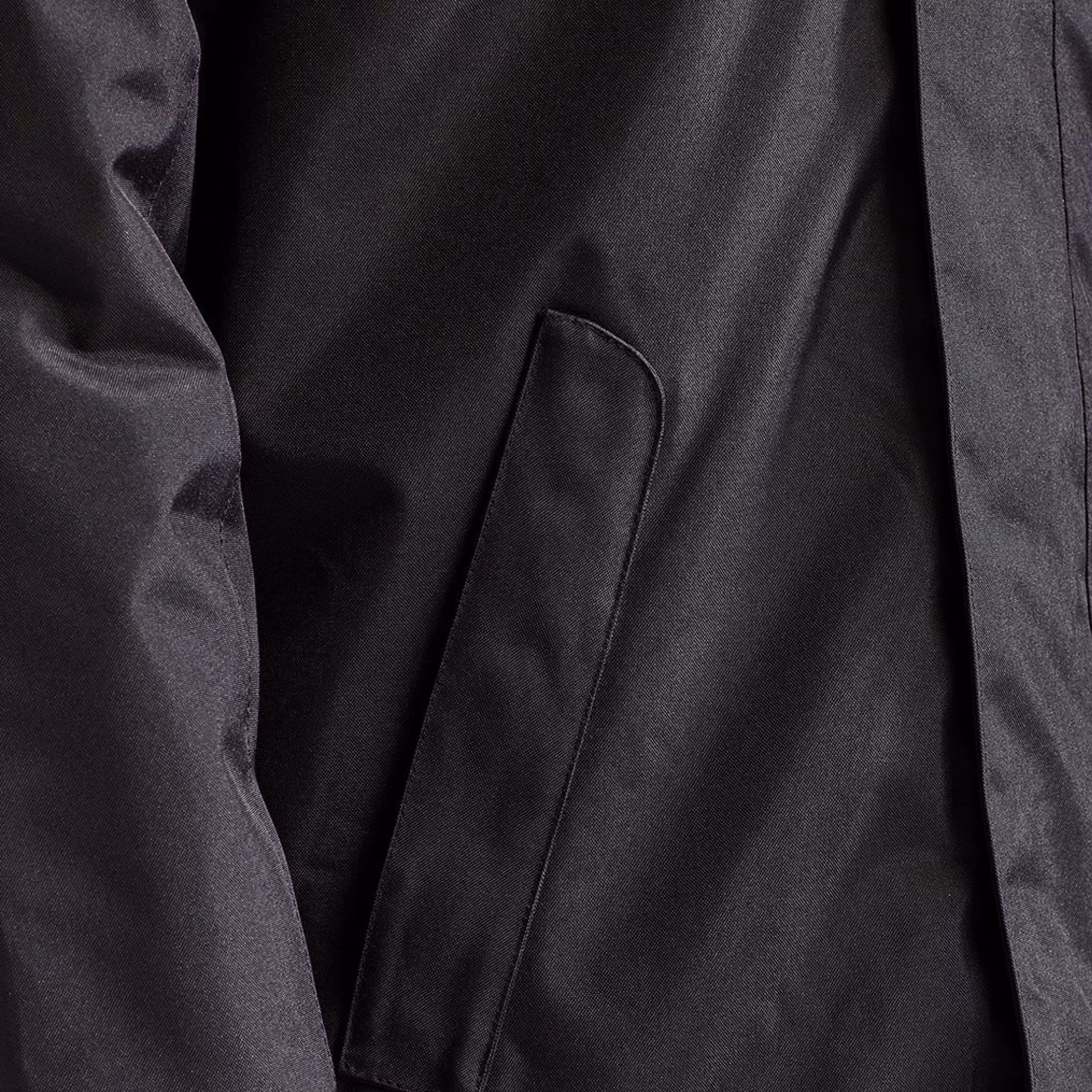 Detaljer Dold justerbar stormhuva, hellång dragkedja med stormslå, fleecefodrad krage med hakskydd, stickade stormmuddar, två framfickor med dragkedja, två innerfickor