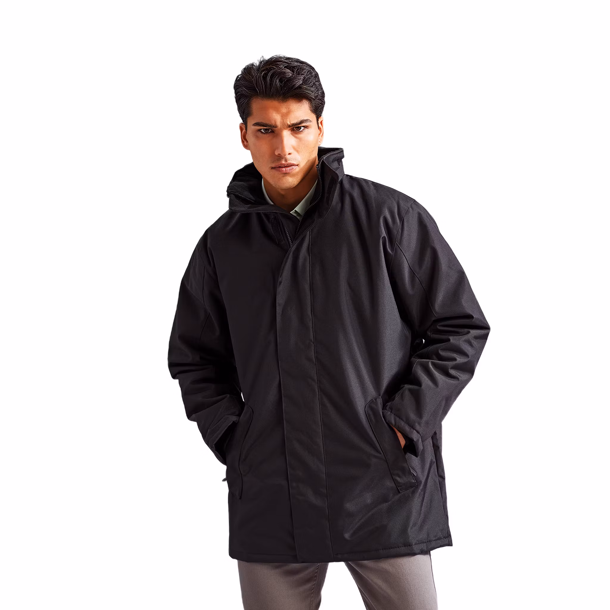 Jackan är utrustad med värmande quiltat foder, fleecefodrad krage och dold justerbar huva för extra komfort i kyligare väder. Praktiska fickor och smarta lösningar för profiltryck gör den särskilt lämplig för företag och team som vill kombinera funktion med varumärkesprofilering.