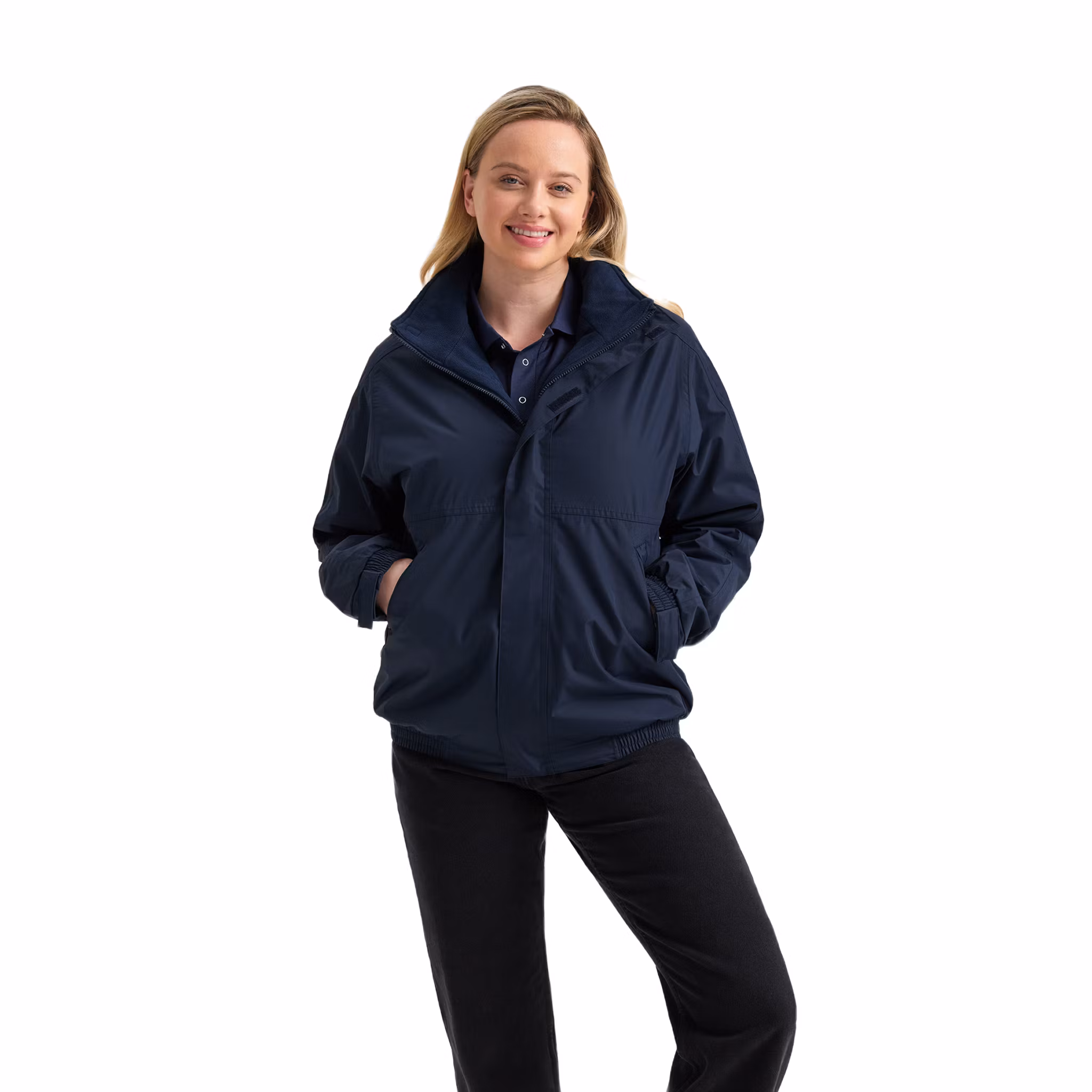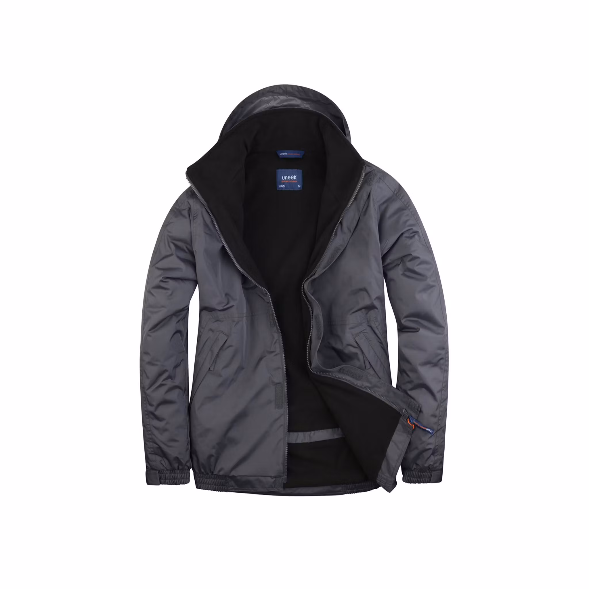 Detaljer: Vattentät konstruktion med tejpade sömmar, vindskyddande material, vattenpelare 5 000 mm, dold huva, modern passform, fleecefodrad krage, microfleecefoder för extra komfort och värme, isolerade ärmar, två framfickor med dragkedja, säker innerficka, invändig upphängningsögla, justerbara ärmslut, elastisk nederkant, dold dragkedjeöppning för brodyr/åtkomst (embroidery access)