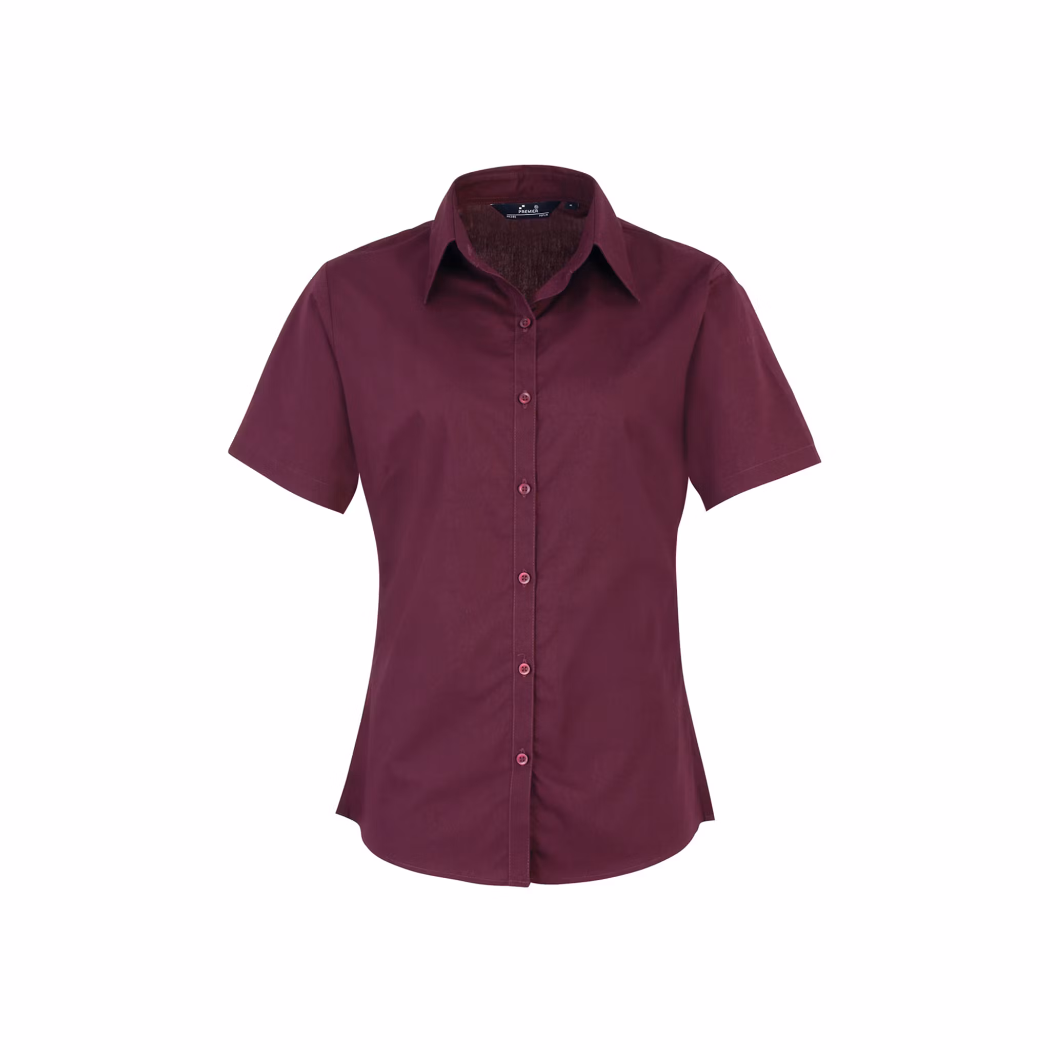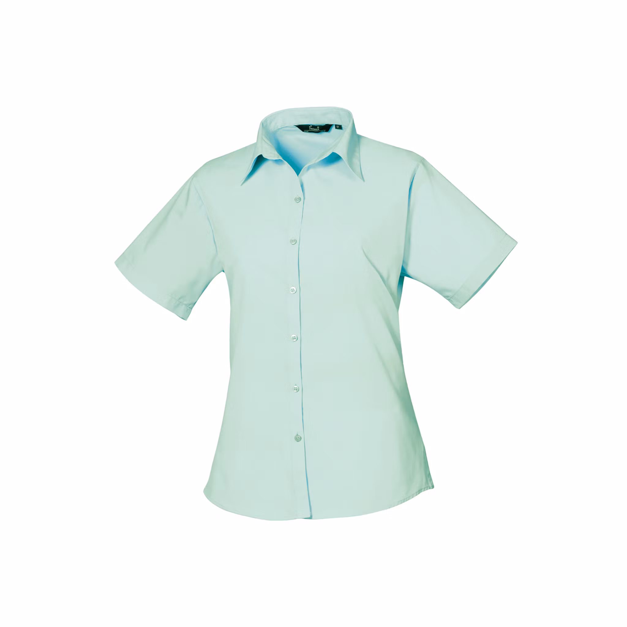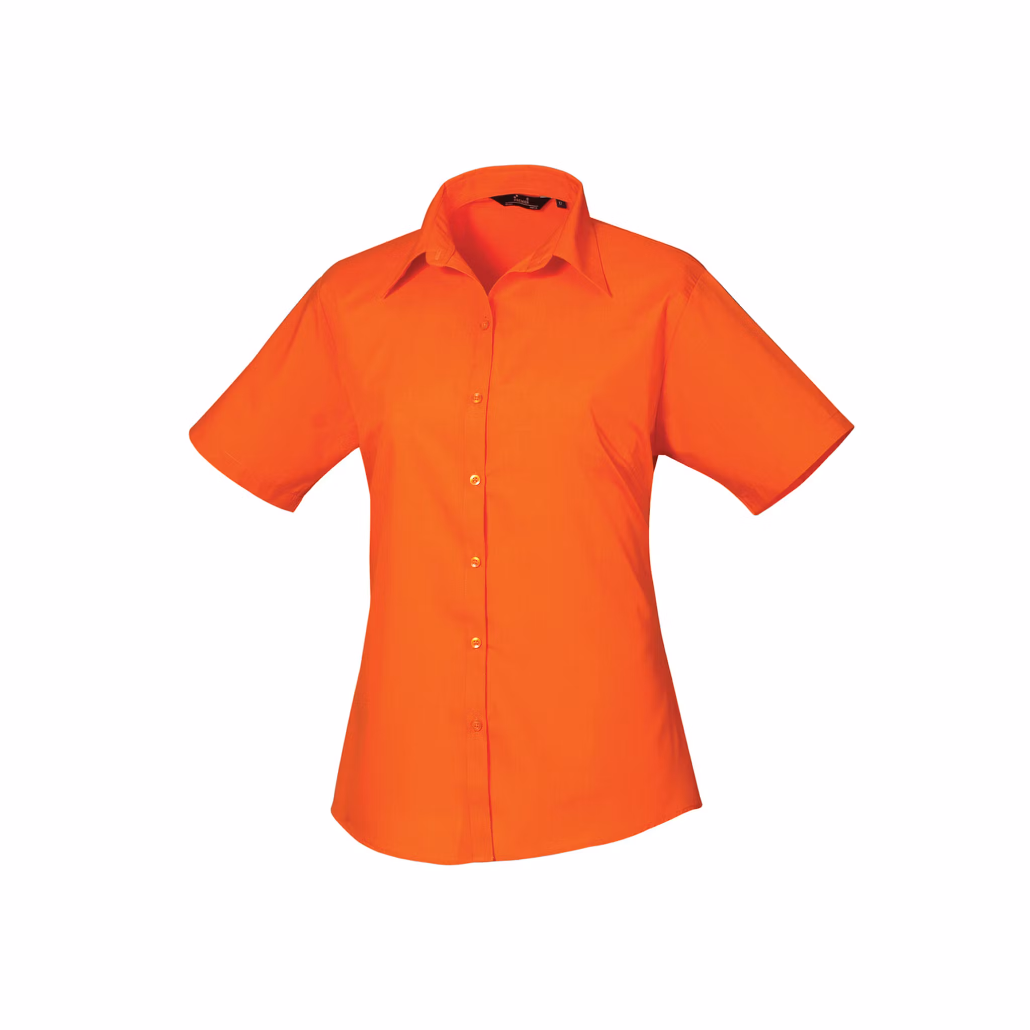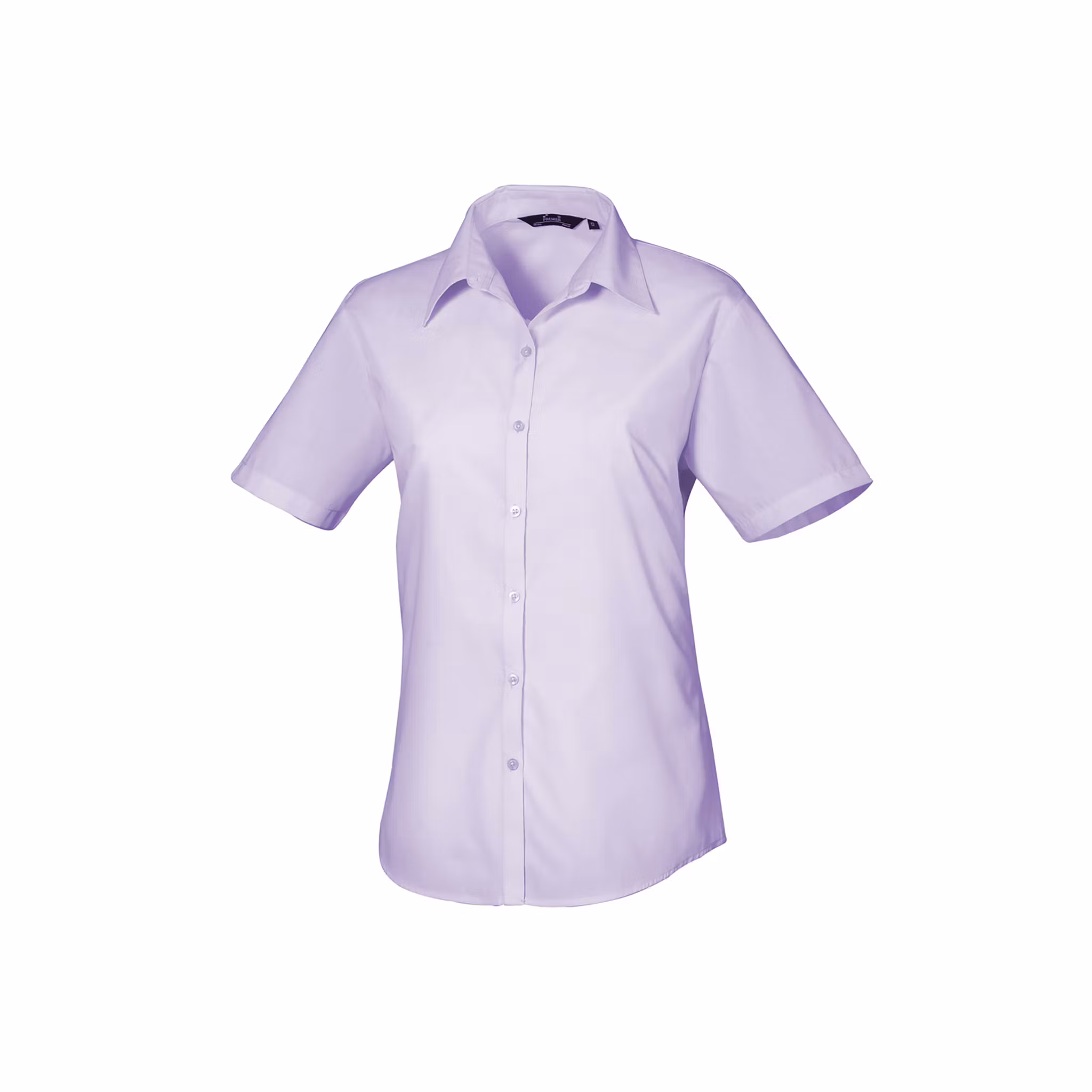 Kortärmad poplinblus för dam med figurnära passform i många olika färger och storlekar. Modellen har mjuk krage, byst- och rygginsnitt samt rundad nederkant – ett bekvämt och stilrent plagg för arbete i service och kontor.